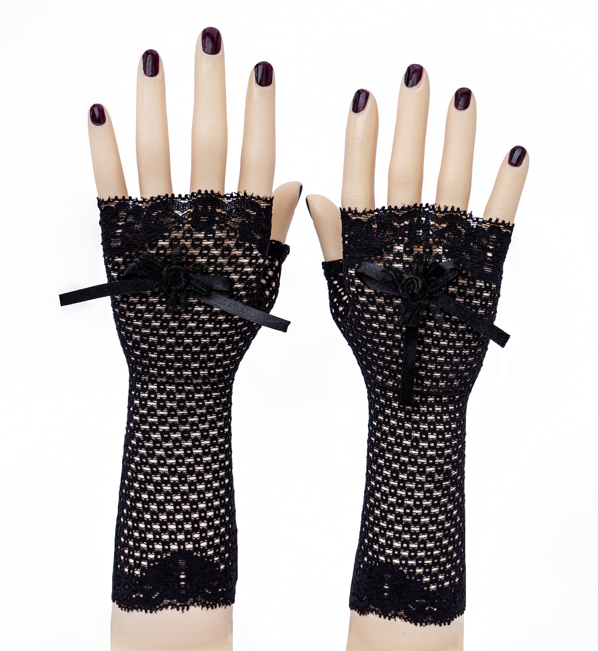 sexy lolita wrist warmers with hole pattern & bow