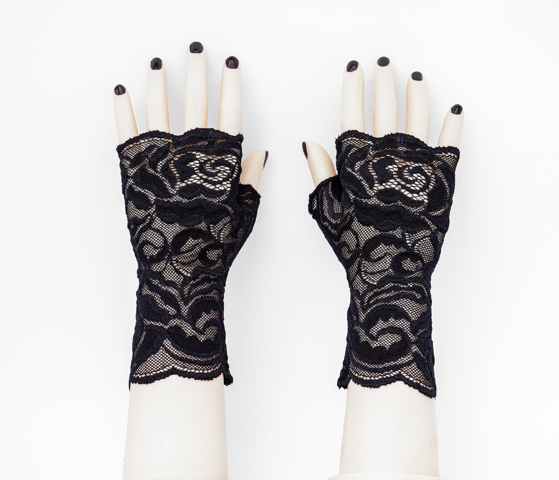 Gants en maille de haute qualité fabriqués en Allemagne, à motifs, légèrement brillants, élastiques et munis d'un pouce pour faciliter l'enfilage, un gant droit et un gant gauche.