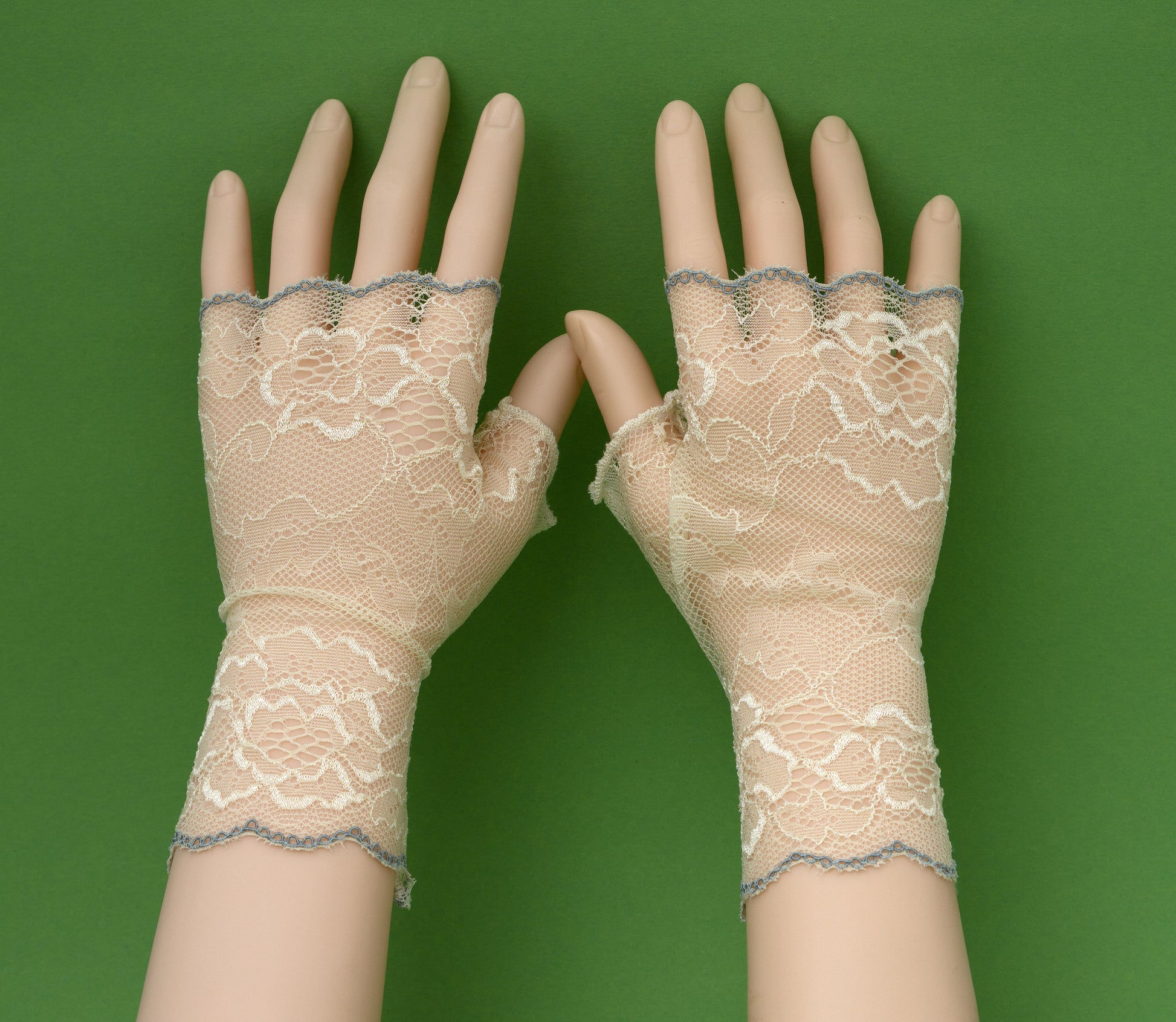 Lingerie en dentelle de qualité Textronic douce, confectionnée avec soin, au fini légèrement brillant, légèrement élastique et munie d'un pouce pour faciliter l'enfilage, un gant droit et un gant gauche.