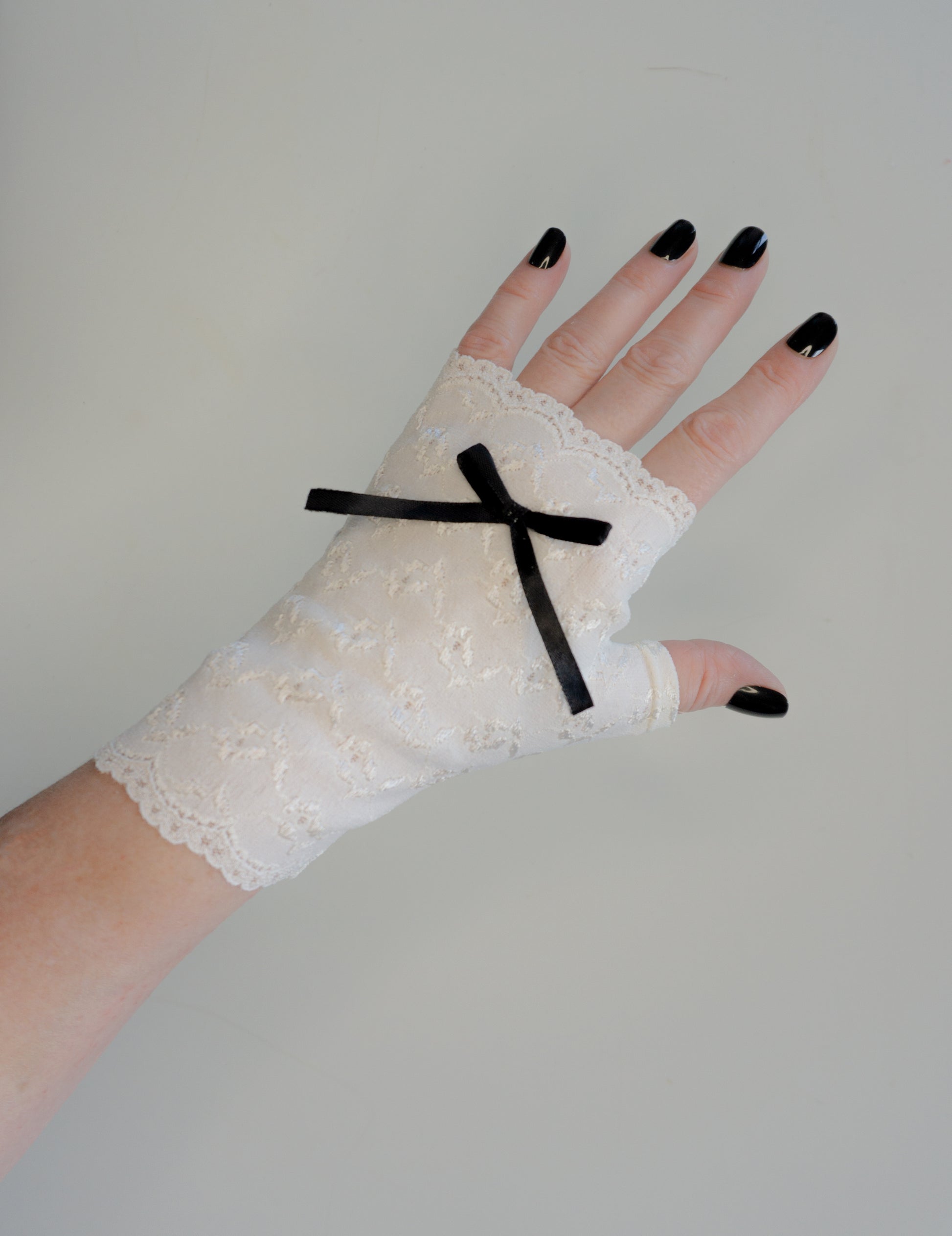Fabriqué en tissu dentelle : élastique, opaque, ultra doux, de haute qualité, avec de petites fleurs brodées, élastique et muni d'un pouce pour faciliter l'enfilage, un gant droit et un gant gauche.
