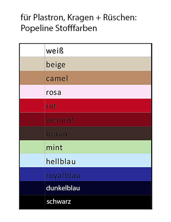 T-shirts uniques avec un empiècement plastron sur la poitrine, encadré de volants et d'un petit col montant ; patte de boutonnage et petits boutons (véritables boutonnières, non décoratives) ; liseré aux manches et à l'ourlet, manches courtes, coupe ajustée, légèrement cintrée ; modèles conçus et fabriqués par nos soins ; tissu de qualité, robuste et doux pour un confort optimal, légèrement extensible, aux couleurs vives et riches.