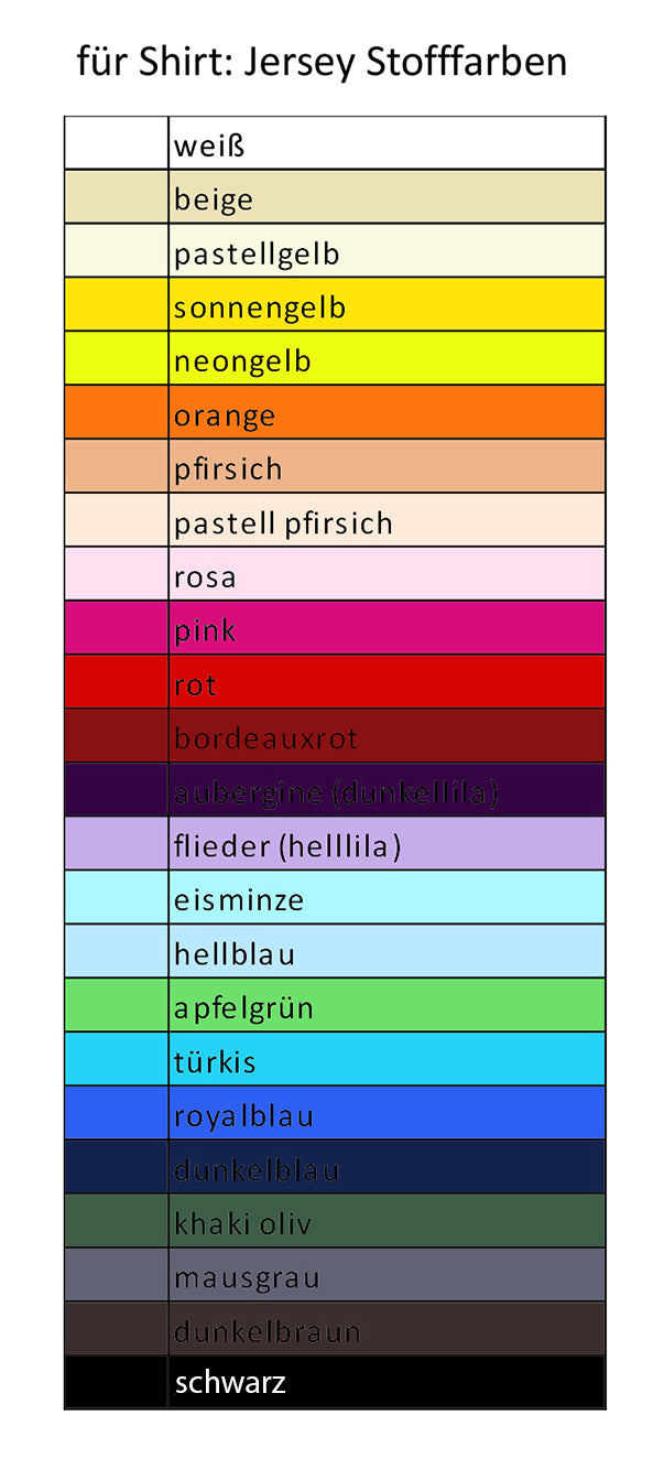 Les couleurs peuvent être choisies dans n'importe quelle combinaison pour ces différentes parties du t-shirt :