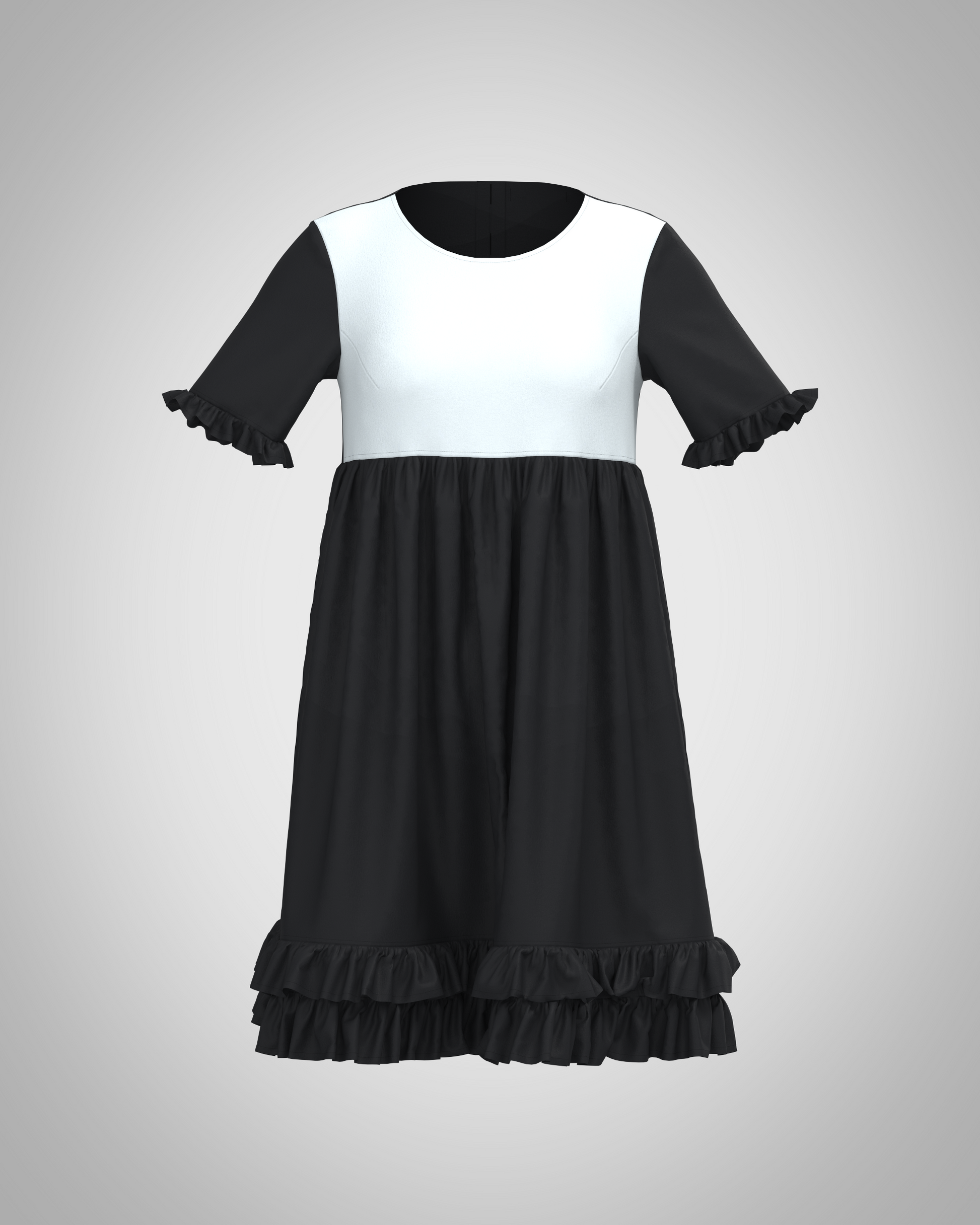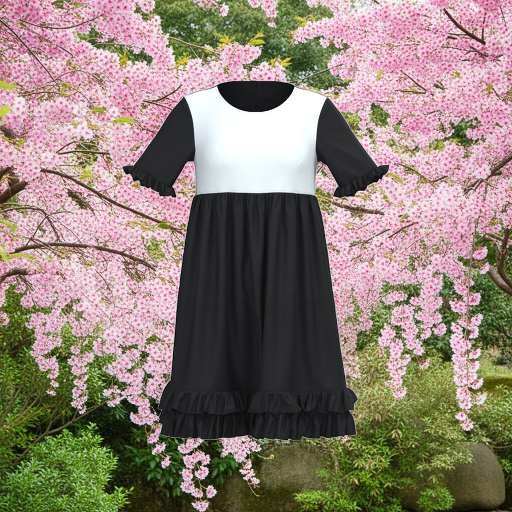 gothic lolita mermaid Damen Kleid Akari mit Rüschen midi aus Baumwolle schwarz weiß