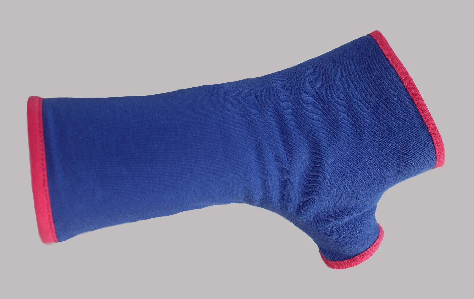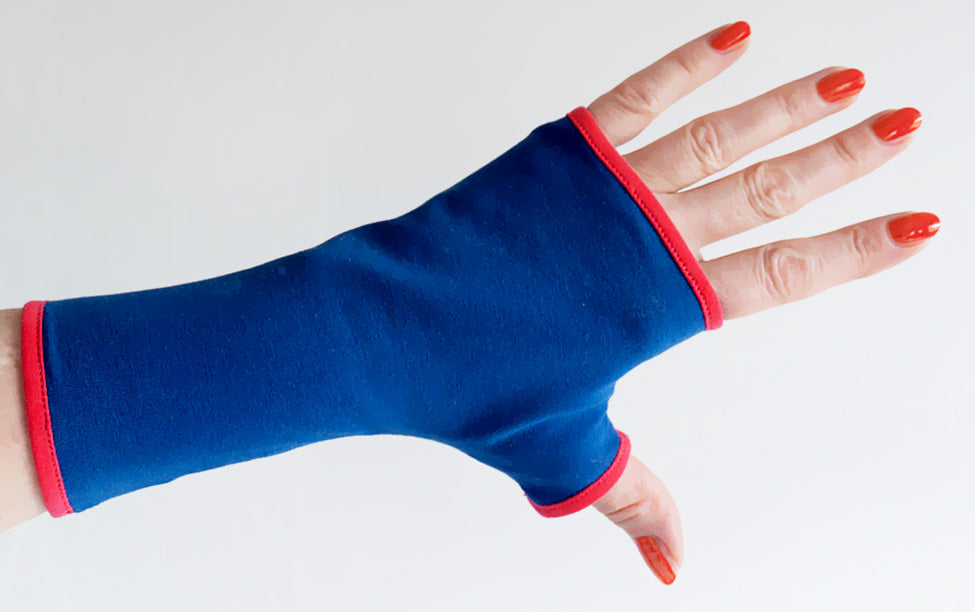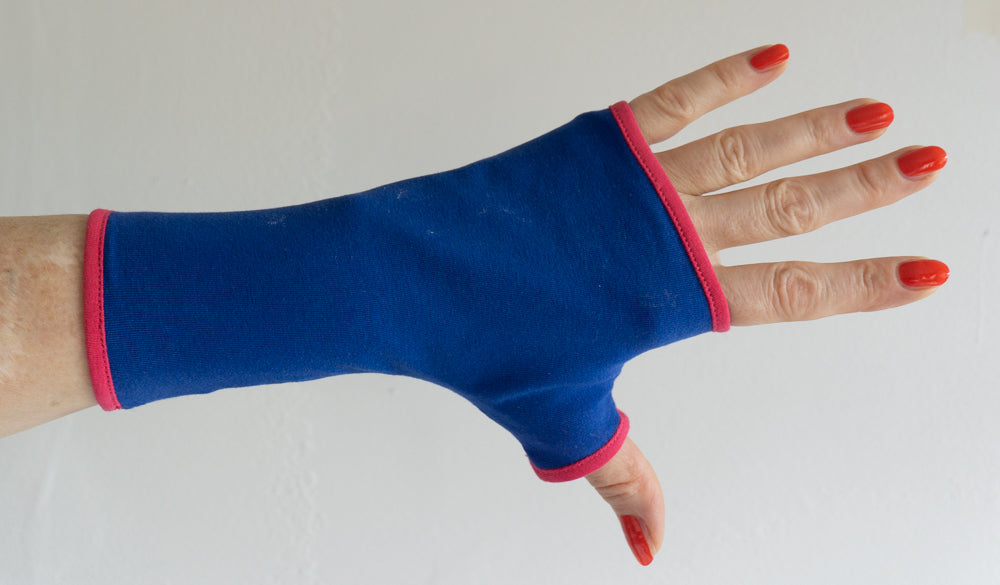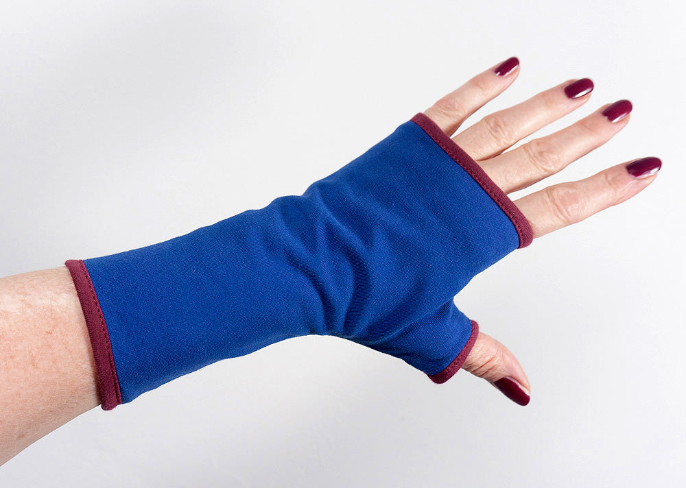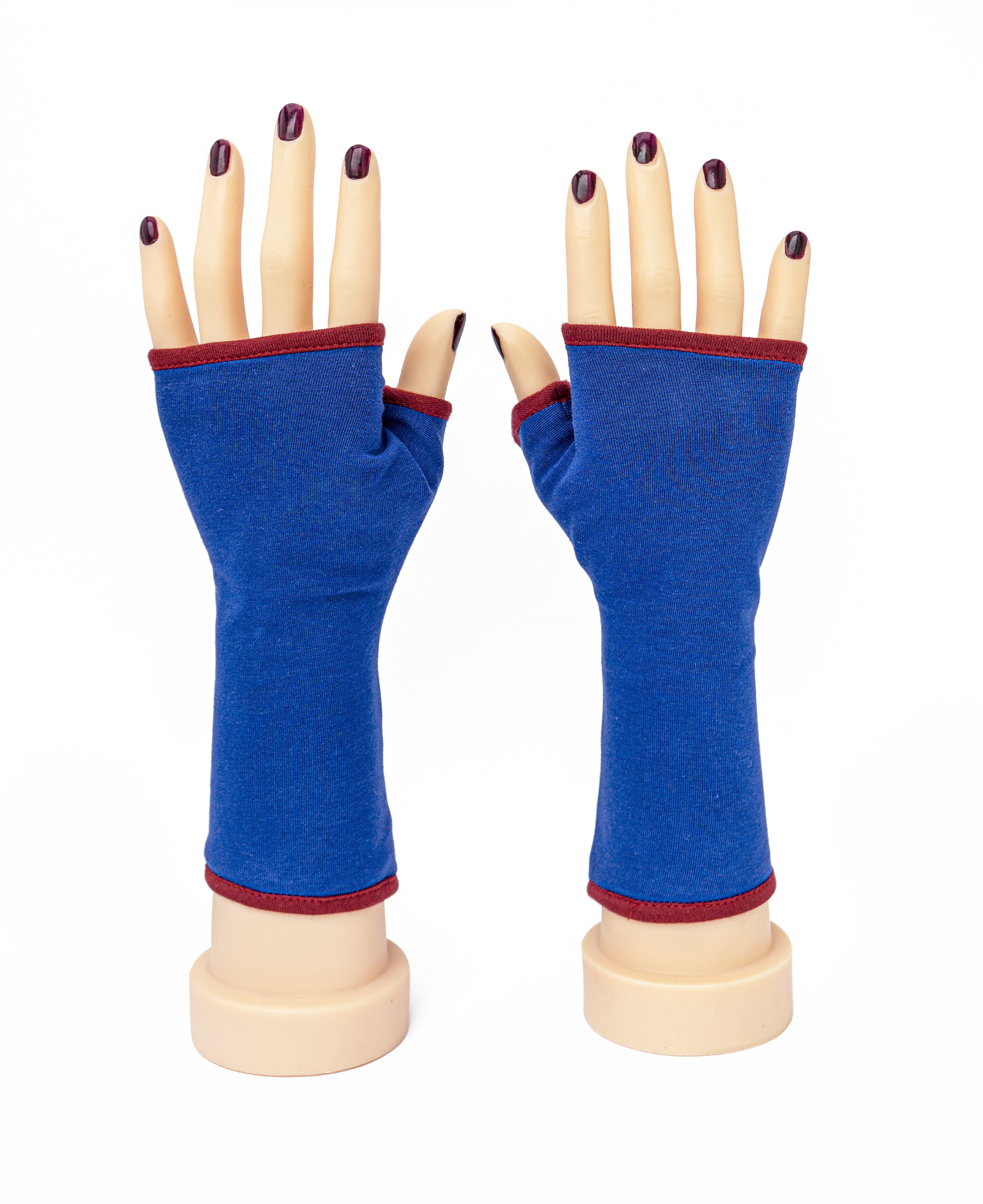 Pulswärmer | Handschuhe fingerlos aus Baumwoll-Jersey in royal blau mit Futter & Paspel