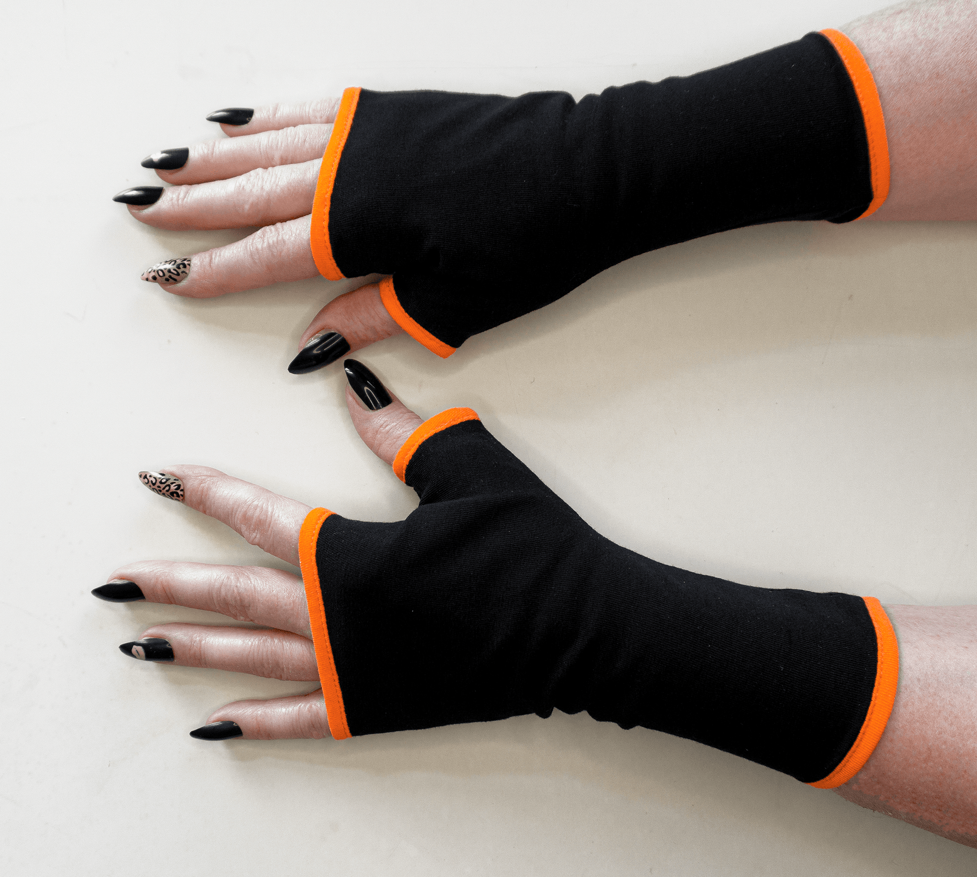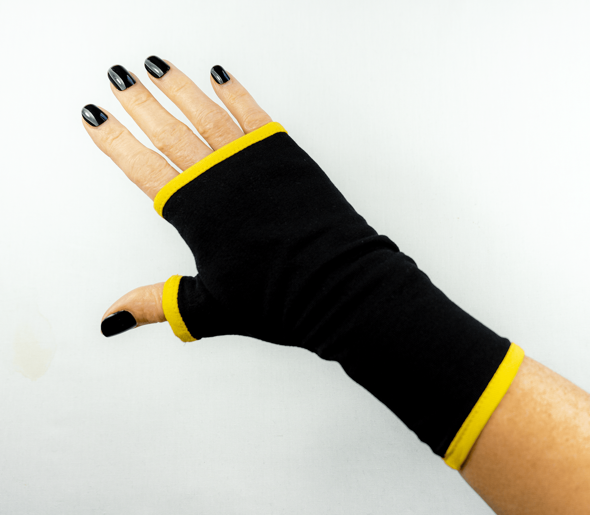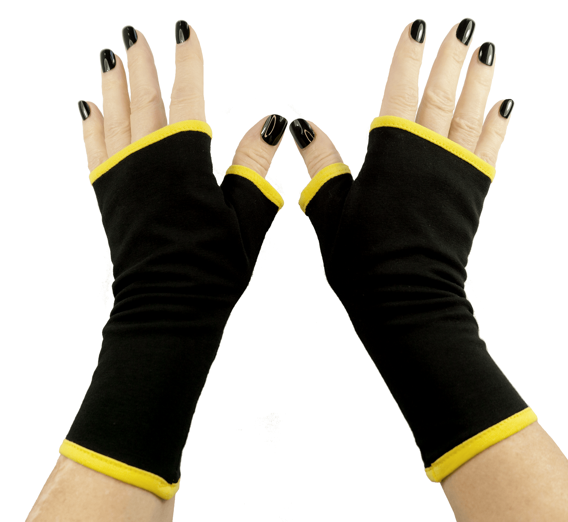 Pulswärmer | Handschuhe fingerlos aus Baumwoll-Jersey in schwarz mit Futter & Paspel