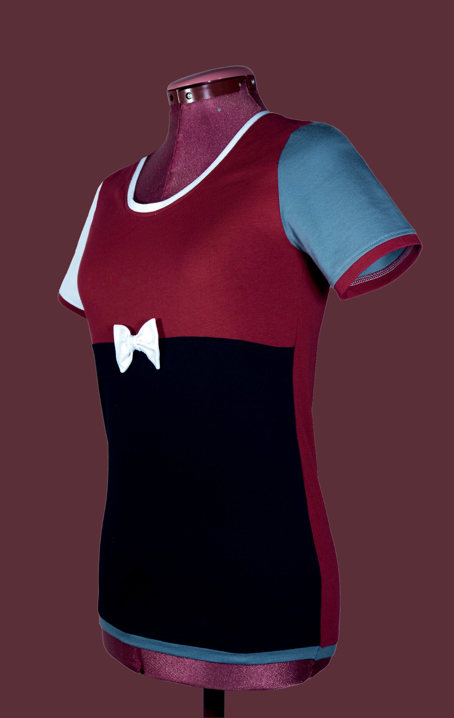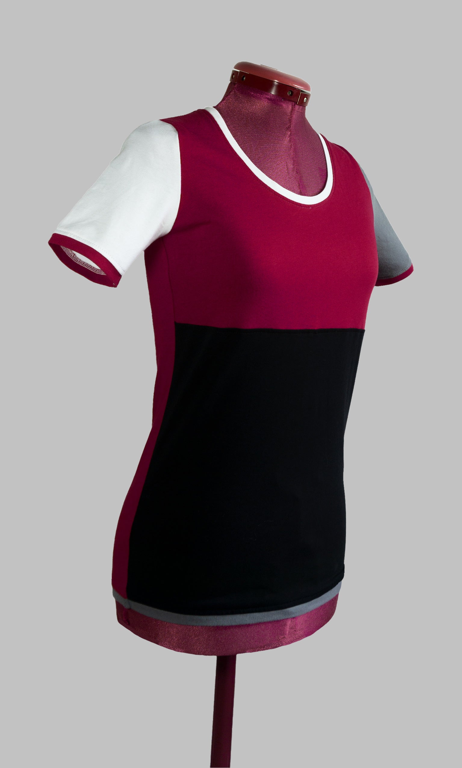 Shirt Nikita Damen oder Kinder Baumwolljersey rot schwarz weiss mausgrau patchwork